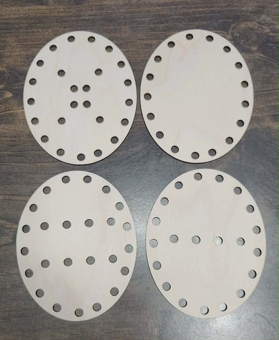 Approx. 4.75 inches tall, each egg is laser-cut from sanded, smooth, unfinished birch wood. Littles can color them, weave yarn through them, and re-weave again and again to create one-of-a-kind artwork for sustainable, screen-free fun.